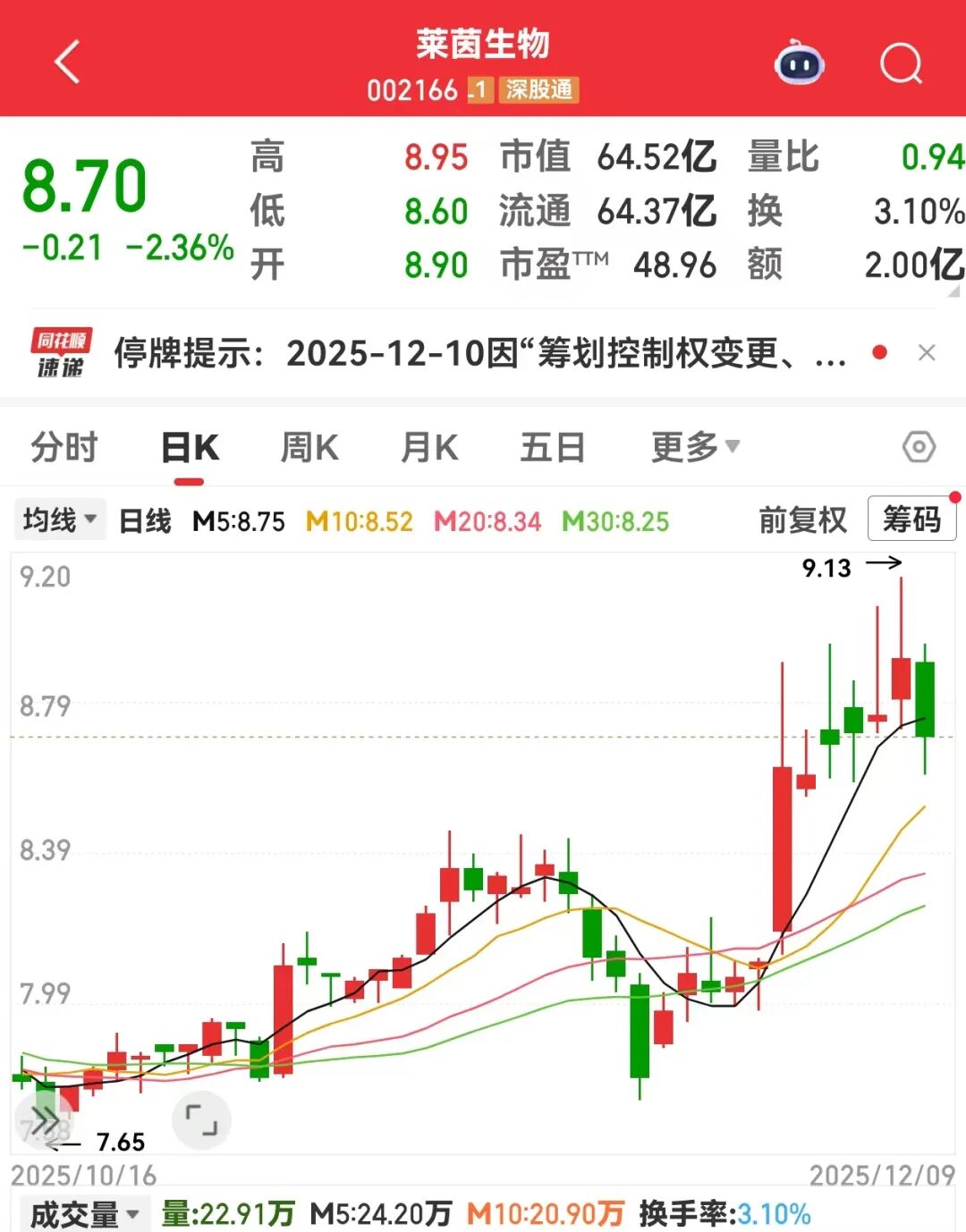 公司股票自2025年12月10日開市起停牌,預計停牌時間不超過10個交易日,控制權變更、發(fā)行股份及支付現金購買資產并募集配套資金事項目前處于籌劃階段,尚存在重大不確定性,敬請廣大投資者注意投資風險。