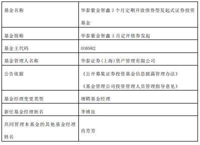 華泰紫金智鑫3月定開債券發(fā)起增聘李博良