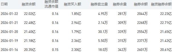 工商銀行(601398)融資融券數(shù)據(jù)顯示,1月22日融資買入1.85億元,融資償還2.31億元,融資凈償還4590.42萬元,融資余額為22.02億元。